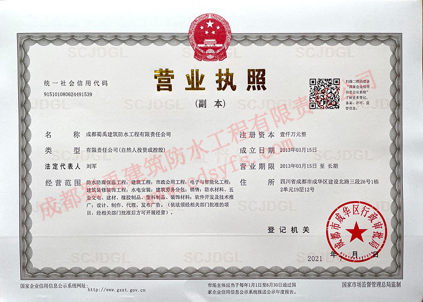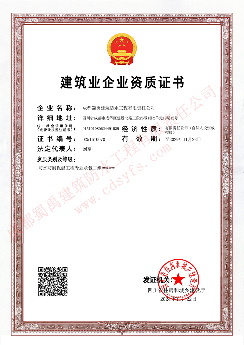 企業名稱:成都蜀禹建筑防水工程有限責任公司