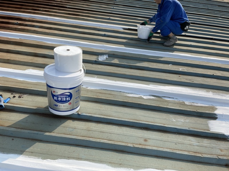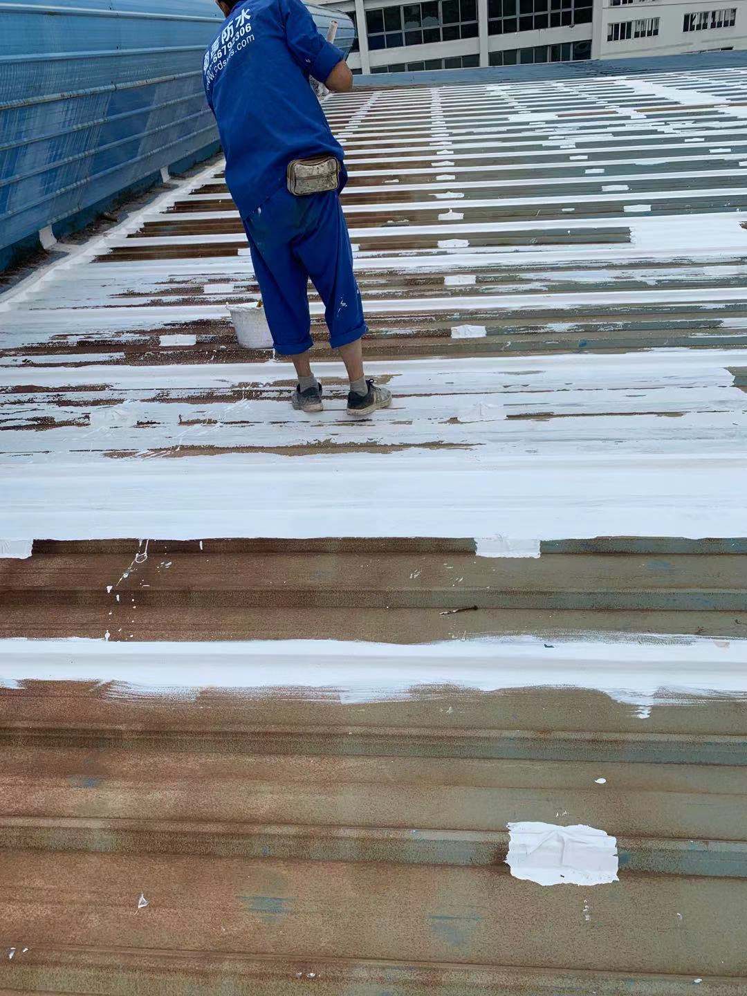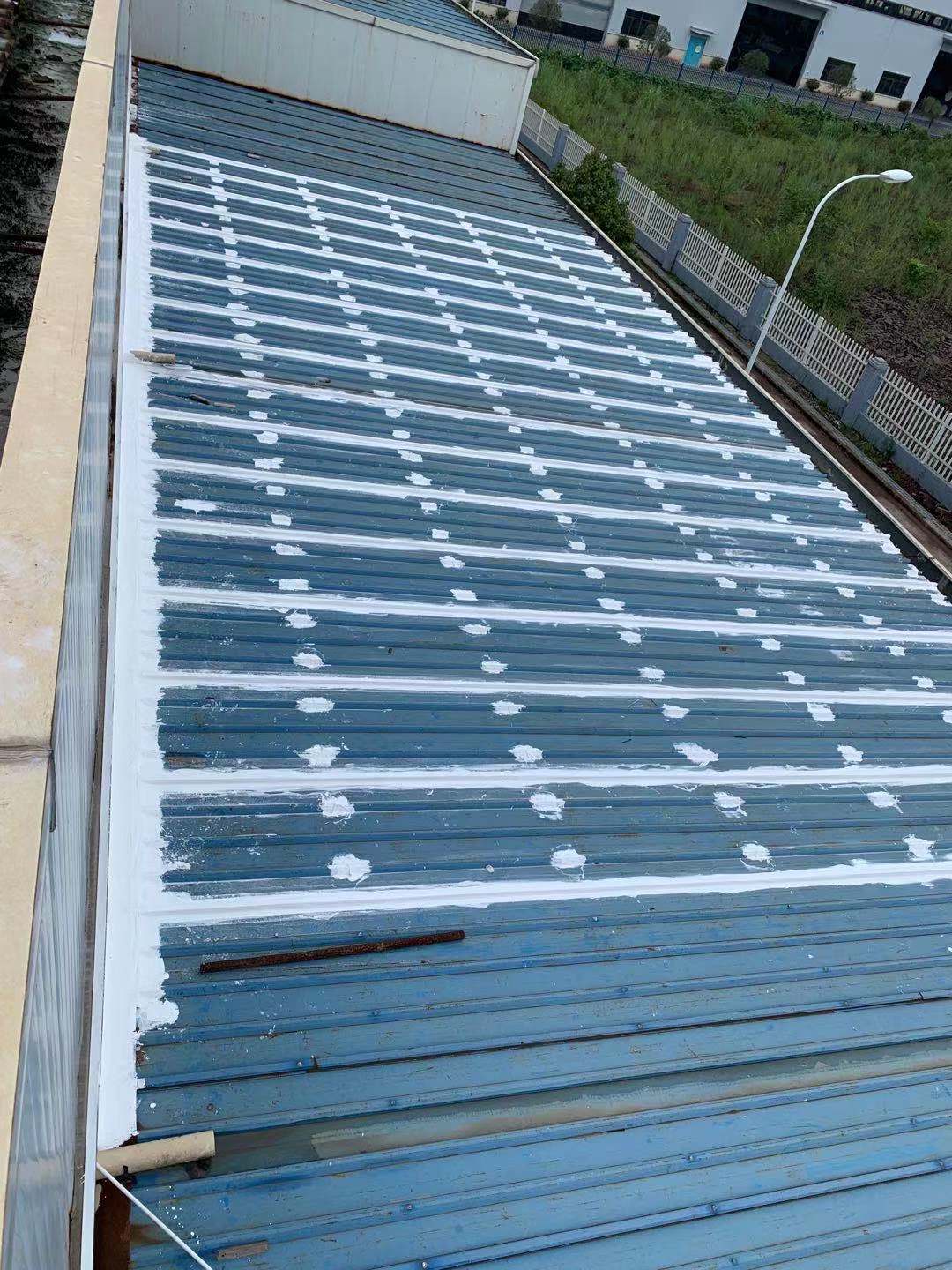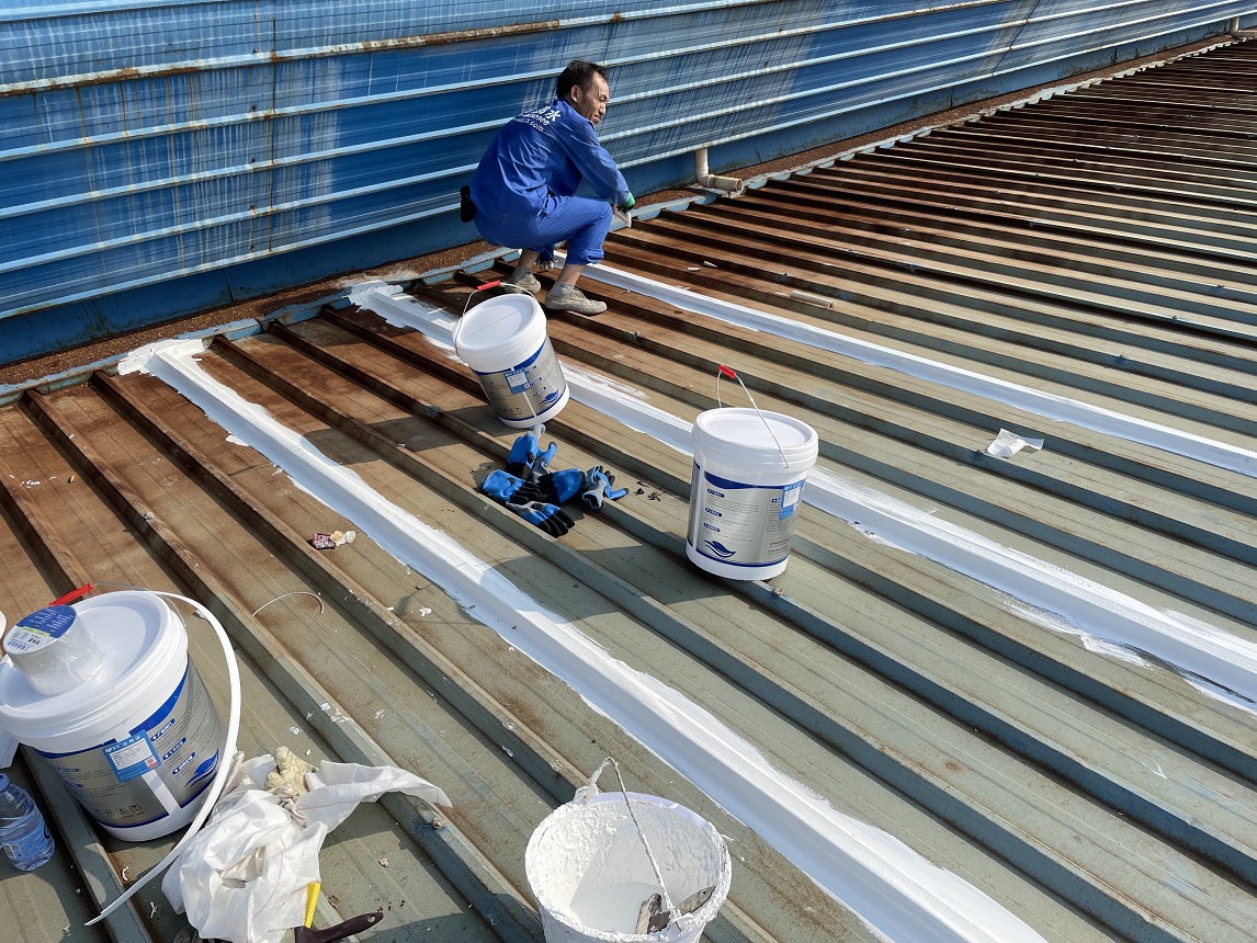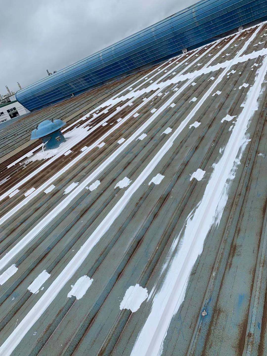 我公司采取的方案是,用SYR金屬屋面專(zhuān)用方式涂料配合縫織聚酯布一布三涂的方式對(duì)彩鋼頂?shù)牟输摯罱涌p以及螺絲釘進(jìn)行防水密封處理
