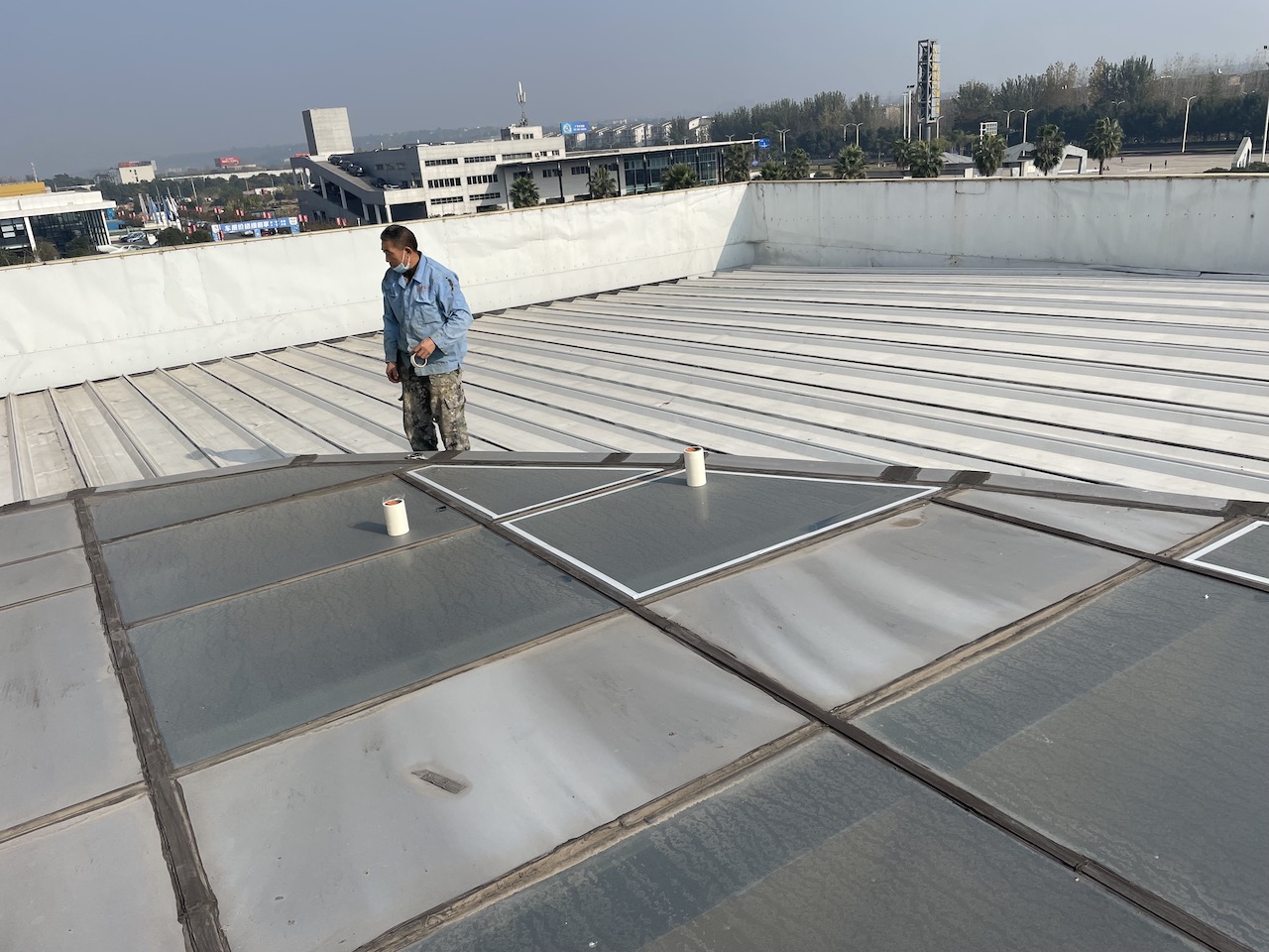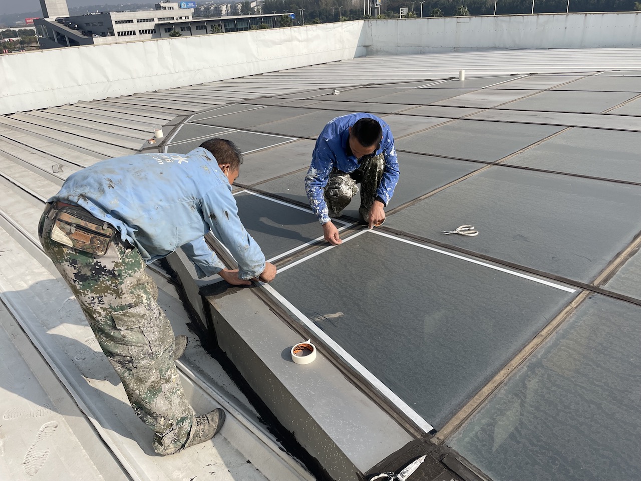 位于綿陽市永興鎮(zhèn)遼寧大道汽車博覽中心的綿陽雷克薩斯4S店,展廳頂部中間是玻璃頂,玻璃頂?shù)牟AЫ涌p位置漏水問題,之前采用瀝青防水涂料、自粘卷材、SBS熱熔改性瀝青施工處理均為解決到問題,依然是當時解決到了,沒過多久下雨又開始漏了,主要就是使用的材料不是外露型的,玻璃頂?shù)臏囟雀撸柋窈芸炀筒恍辛耍掠昃吐┧耍髞碚业轿覀児荆覀児靖鶕?jù)多年的施工經(jīng)驗,針對玻璃頂?shù)钠唇涌p采用SYR金屬屋面防水涂料配合縫織聚酯布施工處理,處理了之后效果很好,業(yè)主方很滿意。