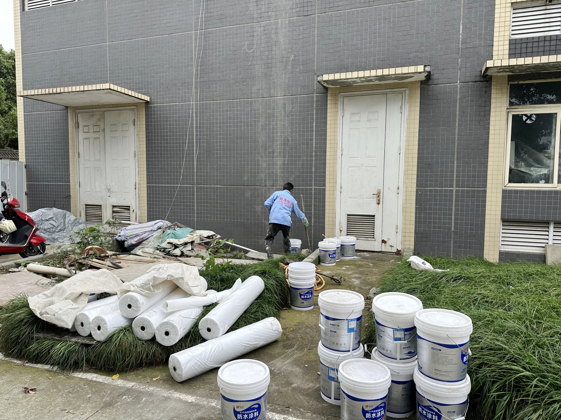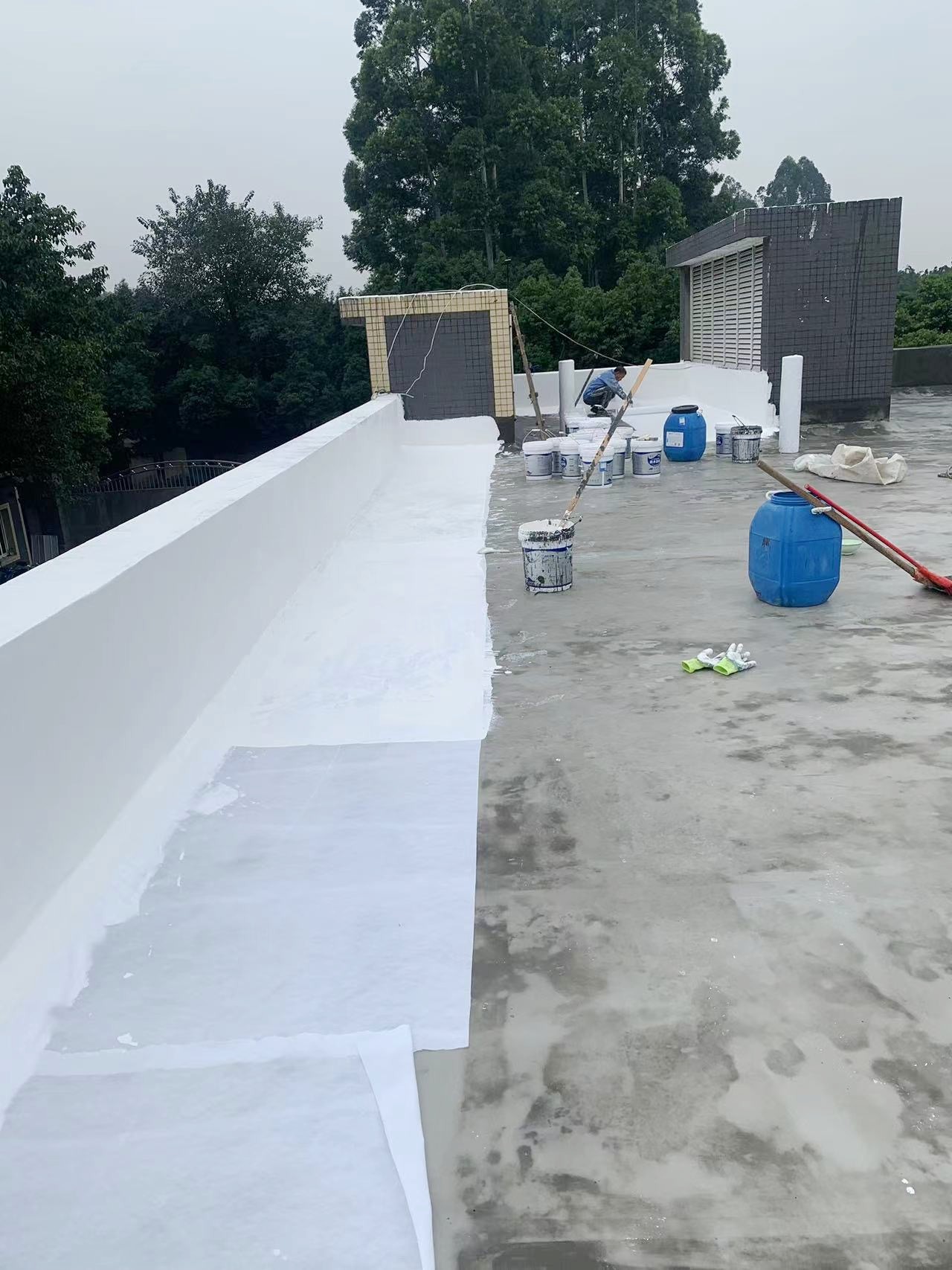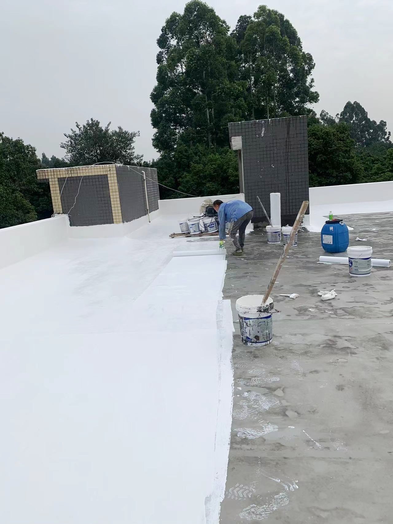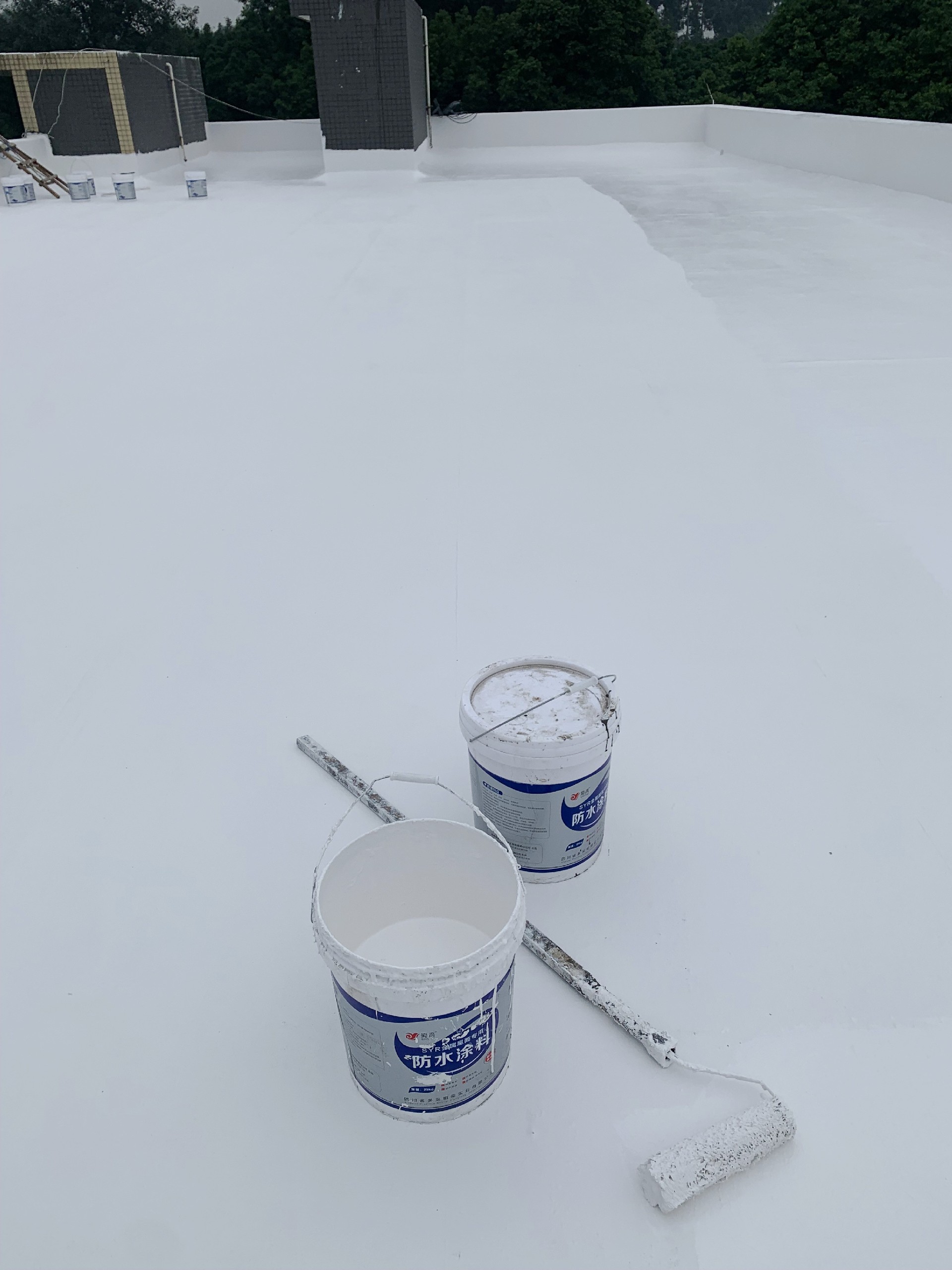 最后,待涂料干燥后,表面再滿滾涂刷(或噴涂)一道SYR金屬屋面防水涂料,形成一層外露型防水保護膜,進一步增強了防水效果。整個施工過程產(chǎn)生的垃圾被及時清理干凈,確保了施工現(xiàn)場的整潔和衛(wèi)生。