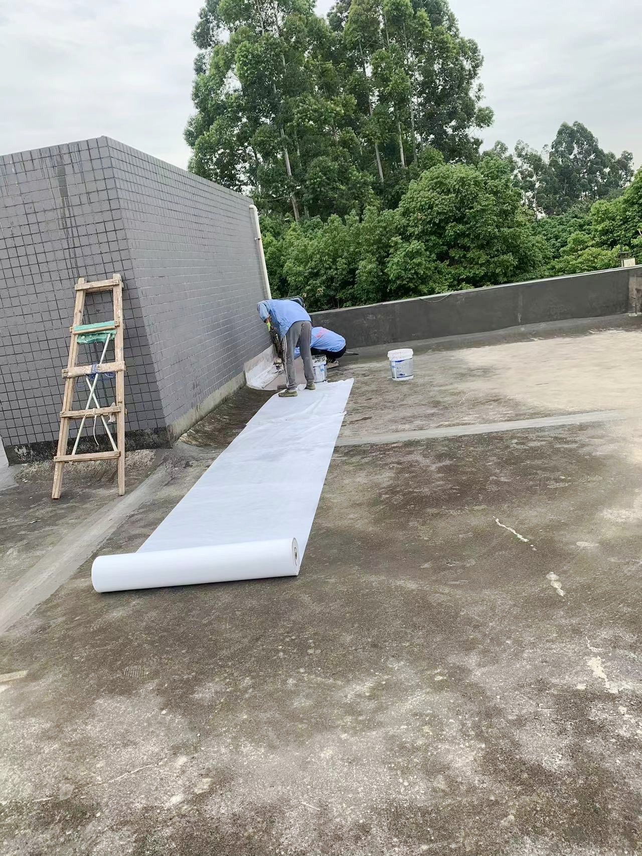 隨后,我們在整個屋面上滿滾涂刷Ⅰ型聚合物水泥防水涂料,以形成均勻的防水層。接著,又滿鋪貼縫織聚酯布,再次滿滾涂刷Ⅰ型聚合物水泥防水涂料。這種反復的涂刷和鋪設,使得防水層更加均勻緊密,有效地提高了屋頂?shù)姆浪阅堋?/p>