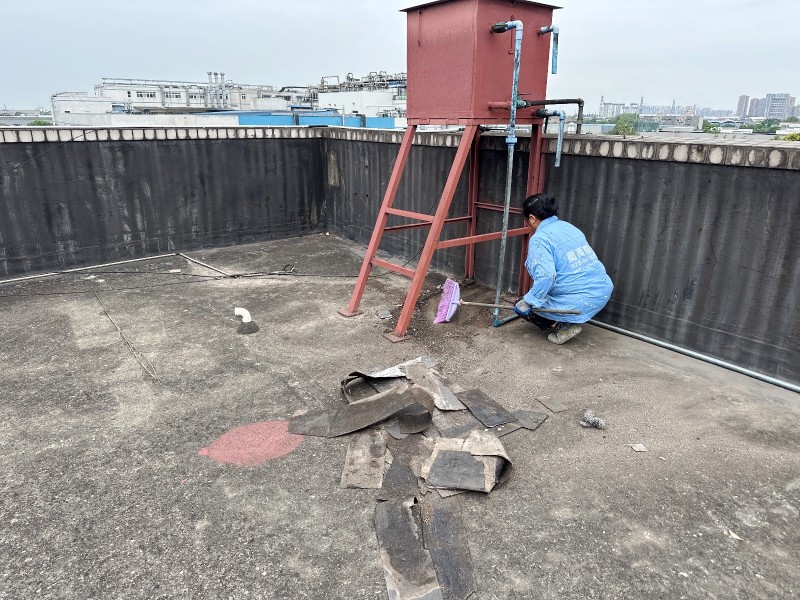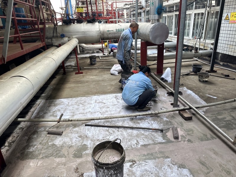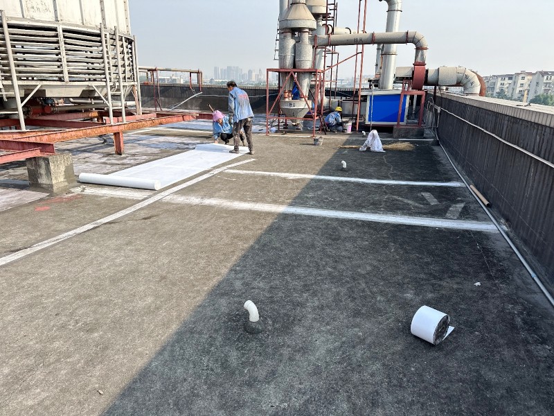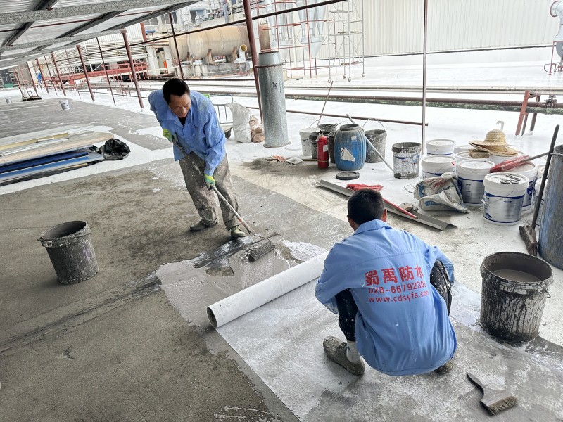 施工過程中,蜀禹防水公司的專業(yè)團隊首先清理了屋頂基層表面的雜物,確保施工面干凈、平整。然后,在基層表面涂刷了一層混凝土液體硬化劑,以增強基層的強度和硬度,為后續(xù)防水層的施工打下堅實的基礎(chǔ)。