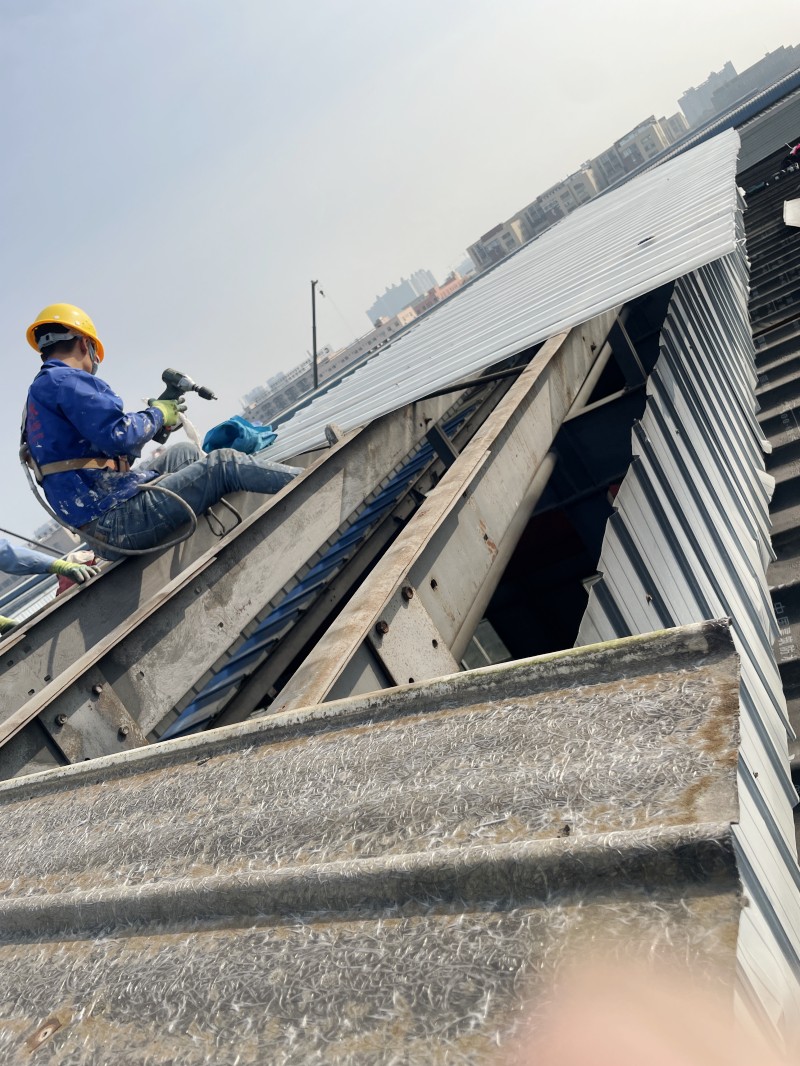 蜀禹技術工人憑借多年鋼結構屋面施工經驗,嚴格按照“拆除—清理—測量—安裝—檢測”流程操作。施工全程佩戴安全裝備,高空作業規范有序,未對廠房正常運營造成干擾。